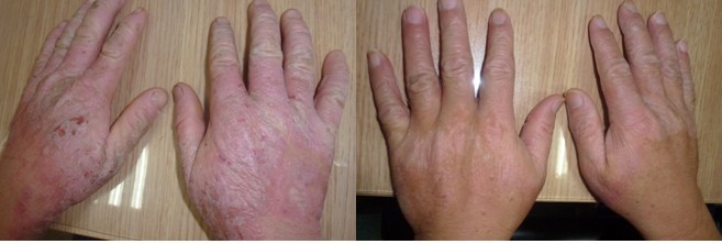 治疗了一个月左右的时间,石先生手上的湿疹基本康复,不再瘙痒,并开始长出新的皮肤。